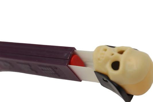 Dr Skull Pez, Skull B, Vampire Pez on Purple Stem, Slovenia, Loose