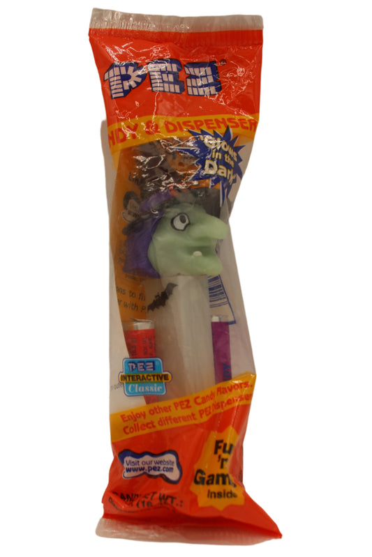 Witch Pez on Glow in the Dark Stem with Bats, 2003, Slovenia, LOOSE OR MINT IN BAG!