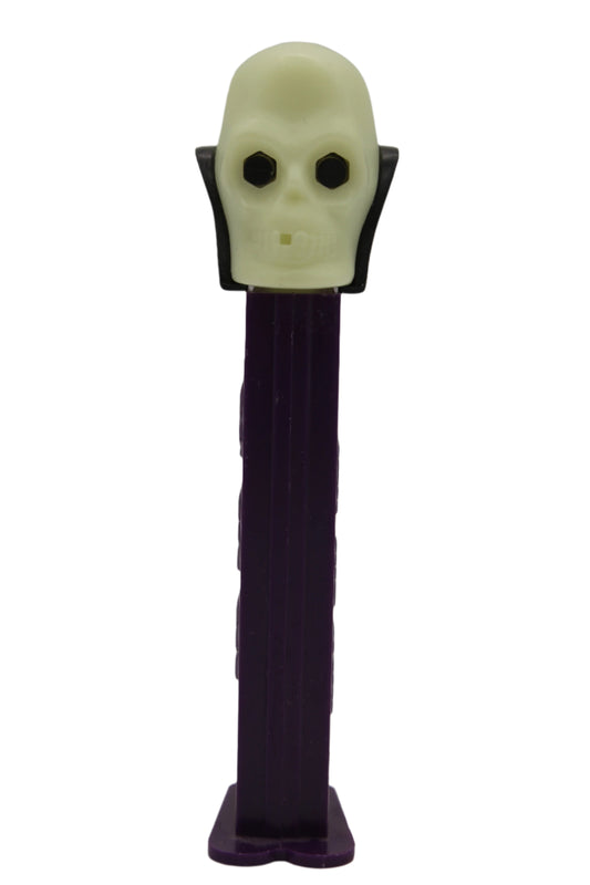 Dr Skull Pez, GLOW IN THE DARK, Vampire Pez on Purple Stem, Slovenia, Loose