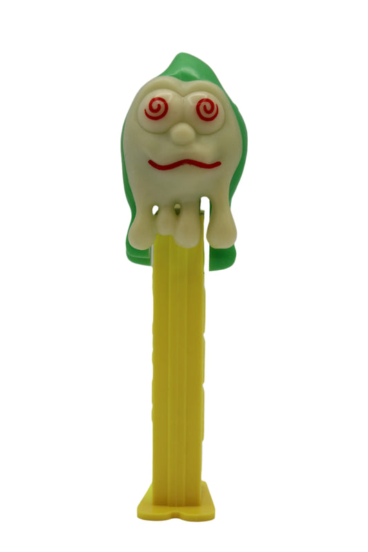 Ghost Pez on Yellow Stem, Slimey Sid, GLOWS IN THE DARK, Loose