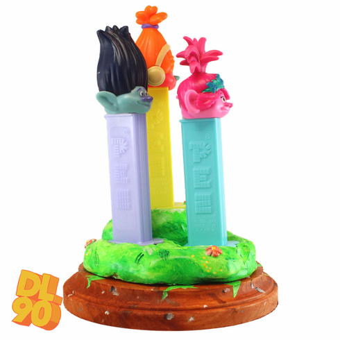 Hand-Crafted Pez Display, Medium, Smurfs Theme, Holds 3 Pez Dispensers