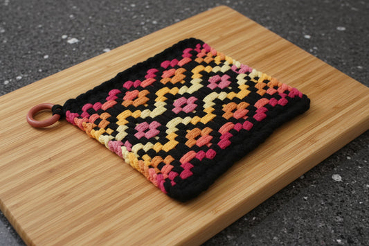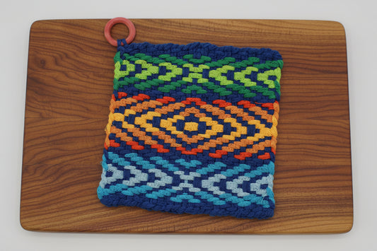 Manique tissée à la main multicolore, anneau en bois