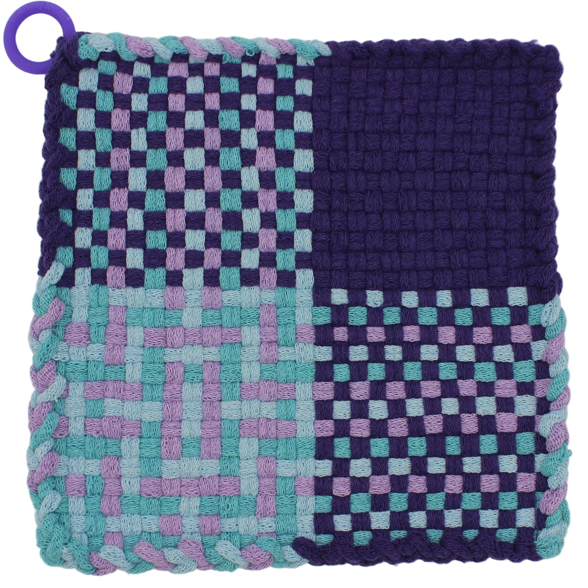 Geo Plum Hand-Woven Potholder, Silicone Ring